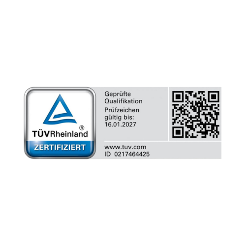Gewährleistung höchster Qualitätsstandards: Die Zertifizierung durch den TÜV garantiert, dass unsere Anlagen den strengsten Anforderungen entsprechen.
